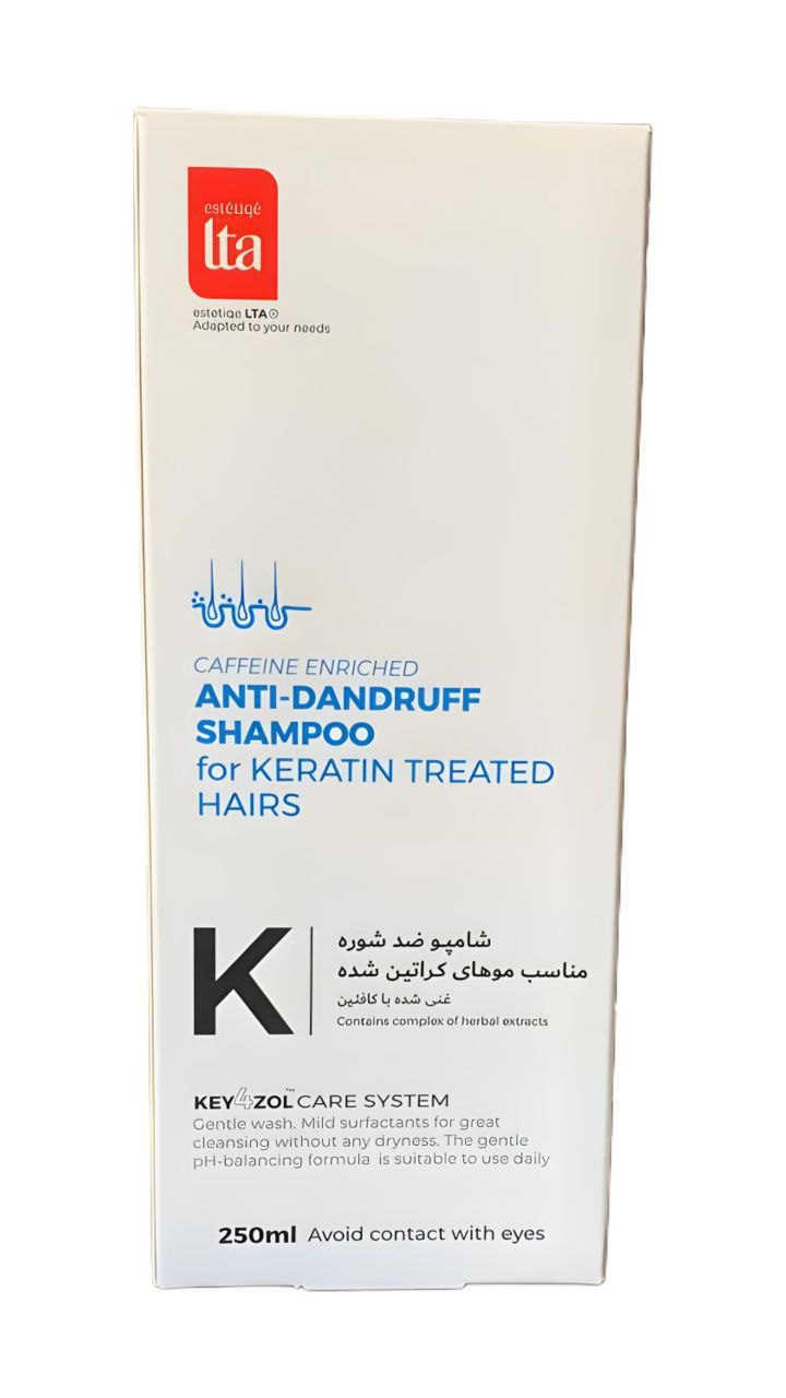 شامپو ضد شوره التا مناسب موهای کراتین شده مدل K غنی شده با کافئین (250 میل)