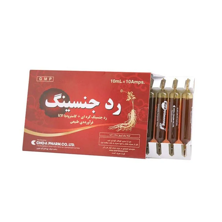 اگر به دنبال یک محصول حاوی جنسینگ با کارایی بالا میگردید با ما همراه باشید. محلول خوراکی رد جنسینگ چوا فارم محصولی از شرکت چوافارم کره جنوبی است. رد جنسینگ محلول با دارا بودن عصاره جینسینگ یک ترکیب تقویتکننده سیستم ایمنی و قوای بدنی است. مصرف محلول خوراکی رد جینسینگ با افزایش اکسیژن رسانی به سلولها و بافتها باعث رفع کسالت و افزایش انرژی و نشاط خواهد شد.